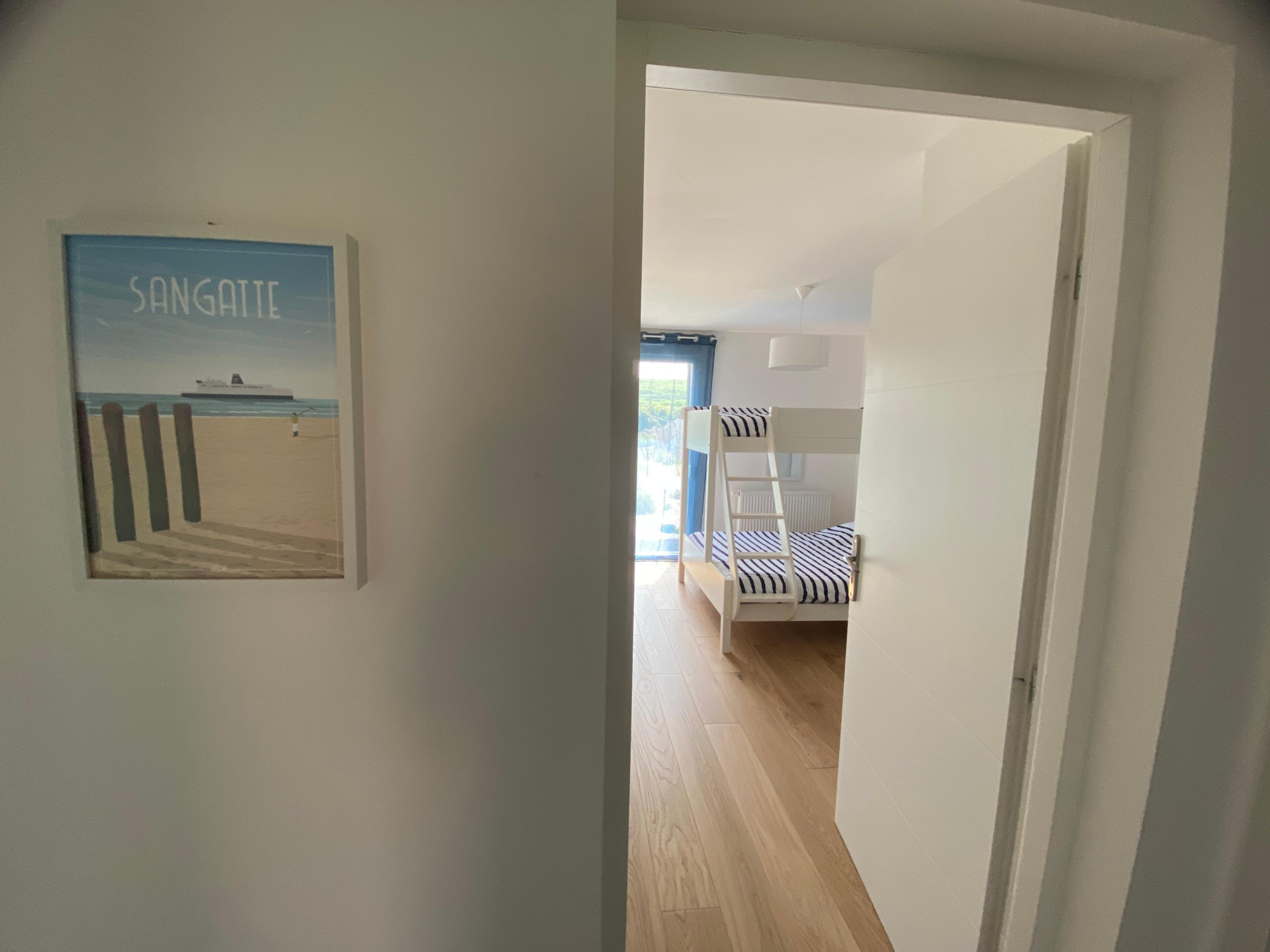 The family suite offers two bedrooms and a private bathroom: - Master bedroom (garden view): 160cm bed / Smart TV / Wi-Fi - Children's bedroom (courtyard view): Bunk bed (140cm bottom / 90cm top) / Wi-Fi - Private bathroom